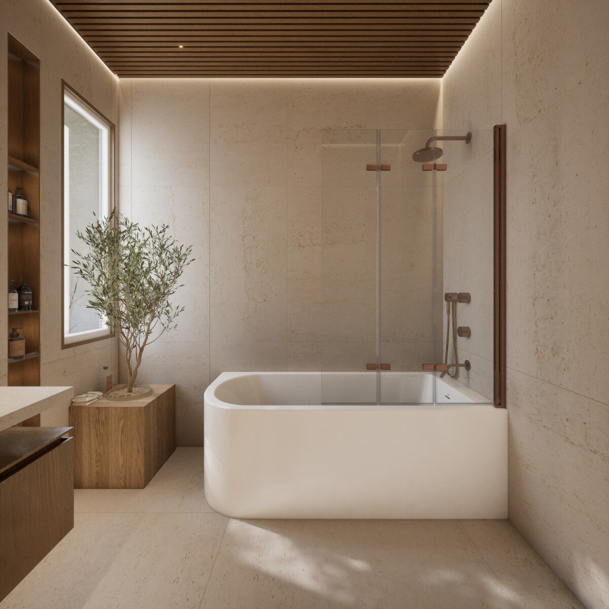 Transparentne szkło o grubości 6 mm nie tylko wygląda luksusowo, ale także zapewnia trwałość i bezpieczeństwo. Dostępne z zawiasami i profilami w kolorach chrom, biały, czarny oraz złoto szczotkowane z powłoką PVD, doskonale komponuje się z każdym stylem wnętrza.