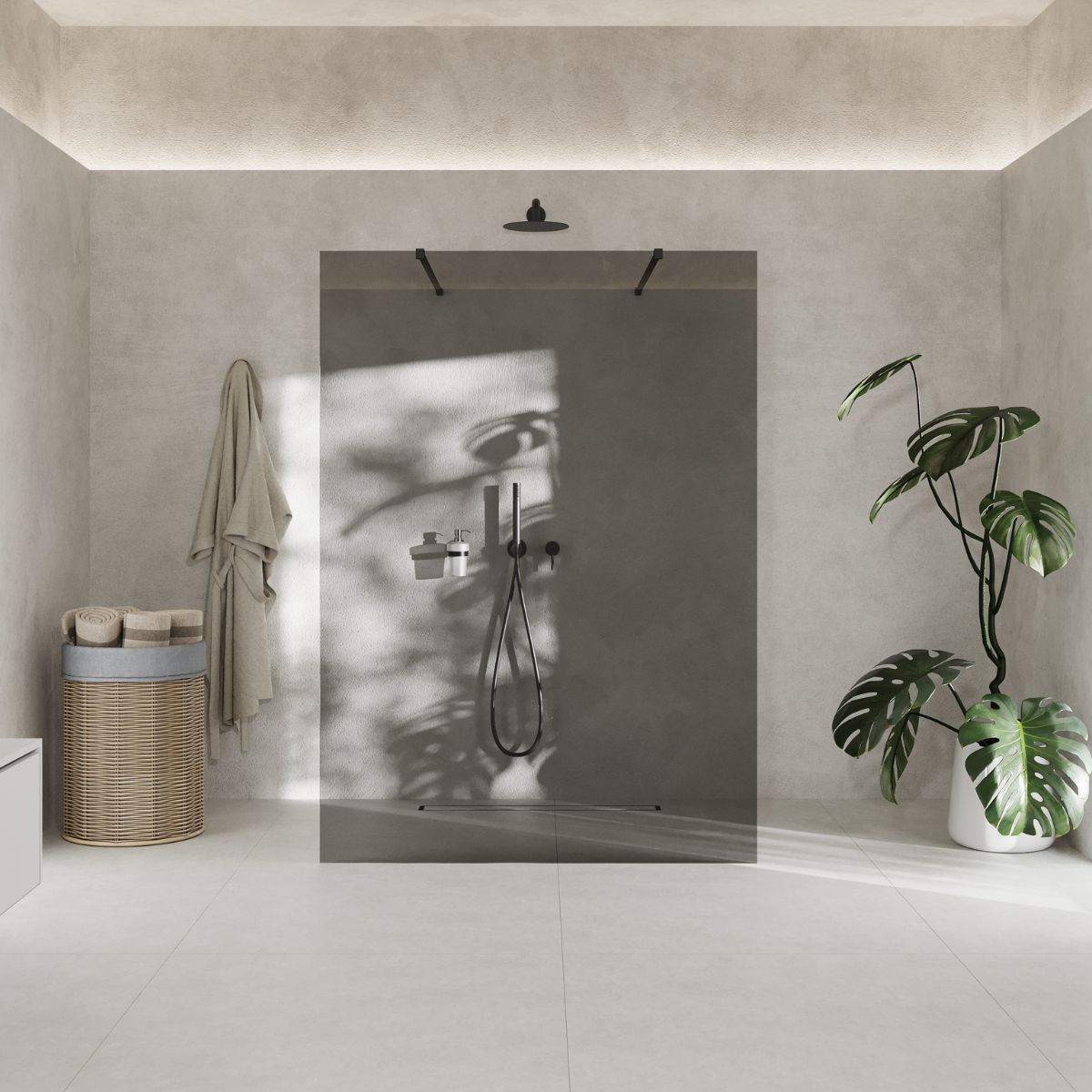 COMO SOLO to wolnostojąca ścianka prysznicowa w klasycznym, prostokątnym kształcie, której regulowany wspornik i barwione w masie 8 mm szkło tworzą minimalistyczne centrum komfortu w przestronnej łazience.