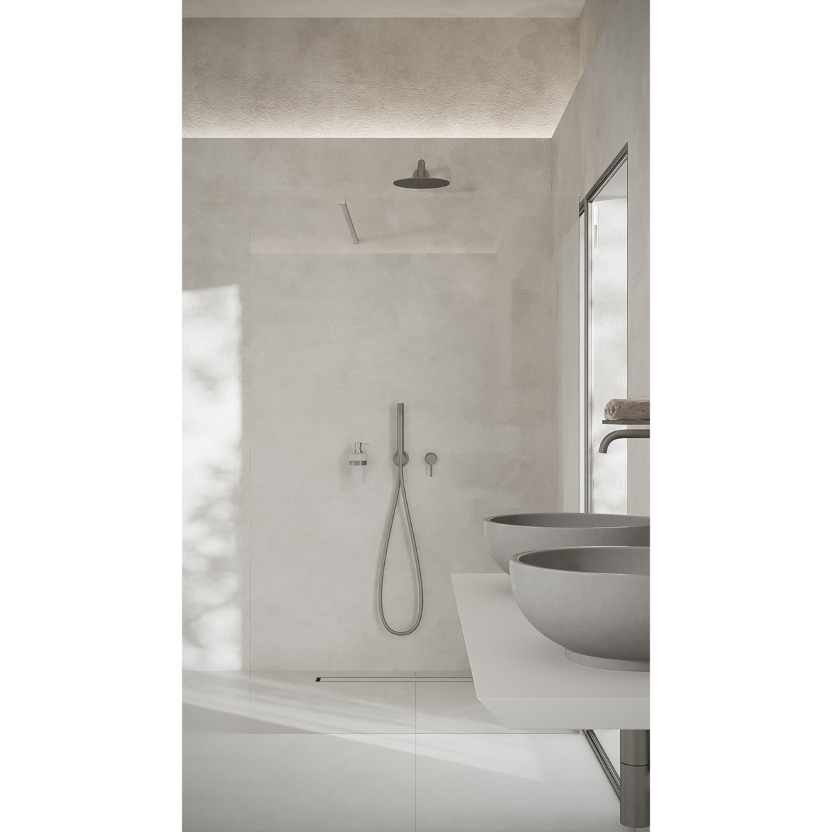 Wyobraź sobie swoją łazienkę, w którym promienie porannego słońca tworzą spektakl cieni i barw na tafli szkła. Kolorowa ścianka prysznicowa COMO WALL narodziła się z idei harmonii między surową geometrią a delikatnością światła.