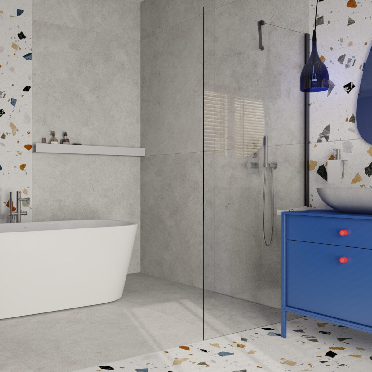 Wyobraź sobie swoją łazienkę, w którym promienie porannego słońca tworzą spektakl cieni i barw na tafli szkła. Kolorowa ścianka prysznicowa COMO WALL narodziła się z idei harmonii między surową geometrią a delikatnością światła.