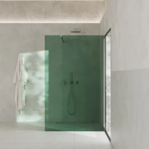 Wyobraź sobie swoją łazienkę, w którym promienie porannego słońca tworzą spektakl cieni i barw na tafli szkła. Kolorowa ścianka prysznicowa COMO WALL narodziła się z idei harmonii między surową geometrią a delikatnością światła.