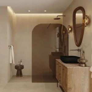 Geometryczna precyzja spotyka łagodność: zaokrąglone naroża tworzą wrażenie lekkości, harmonizują ze światłem i sprawiają, że szkło staje się niemal organicznym elementem wnętrza. To detale, które nie tylko zdobią, ale także eliminują ostre krawędzie, dbając o bezpieczeństwo i komfort.