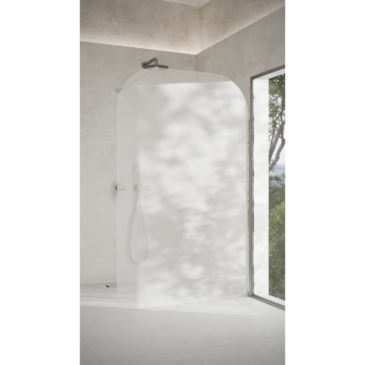 TAHO WALL to elegancka, przyścienna ścianka prysznicowa z hartowanego 8 mm szkła barwionego w masie, z dwoma subtelnie zaokrąglonymi narożnikami, które łagodzą formę i podkreślają lekkość designu. Montowana dłuższym bokiem do ściany, na posadzce lub brodziku – zapewnia maksymalną stabilność i swobodę aranżacji wnętrza.