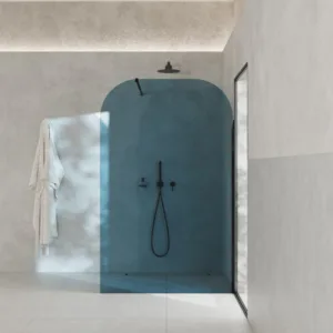 TAHO WALL to elegancka, przyścienna ścianka prysznicowa z hartowanego 8 mm szkła barwionego w masie, z dwoma subtelnie zaokrąglonymi narożnikami, które łagodzą formę i podkreślają lekkość designu. Montowana dłuższym bokiem do ściany, na posadzce lub brodziku – zapewnia maksymalną stabilność i swobodę aranżacji wnętrza.