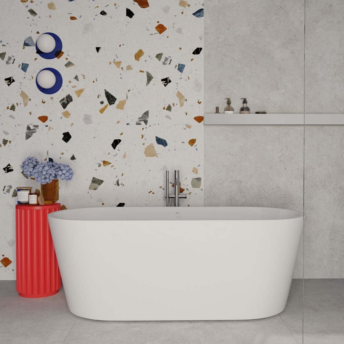 Śnieżnobiały kolor i lekko połyskujące wykończenie rozświetlą wnętrze łazienki. Przyjemny klimat zachęci Cię do codziennego relaksu. Wanna sprawdzi się w aranżacjach boho, nowoczesnych czy minimalistycznych.