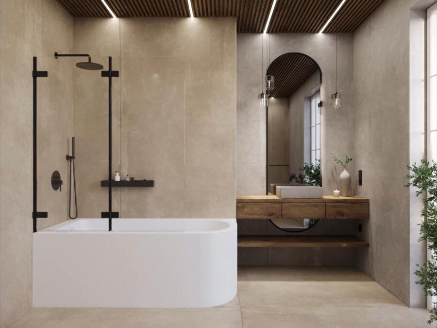 - Styl organiczny – wanna harmonijnie łączy się z drewnem, kamieniem i naturalnymi fakturami.